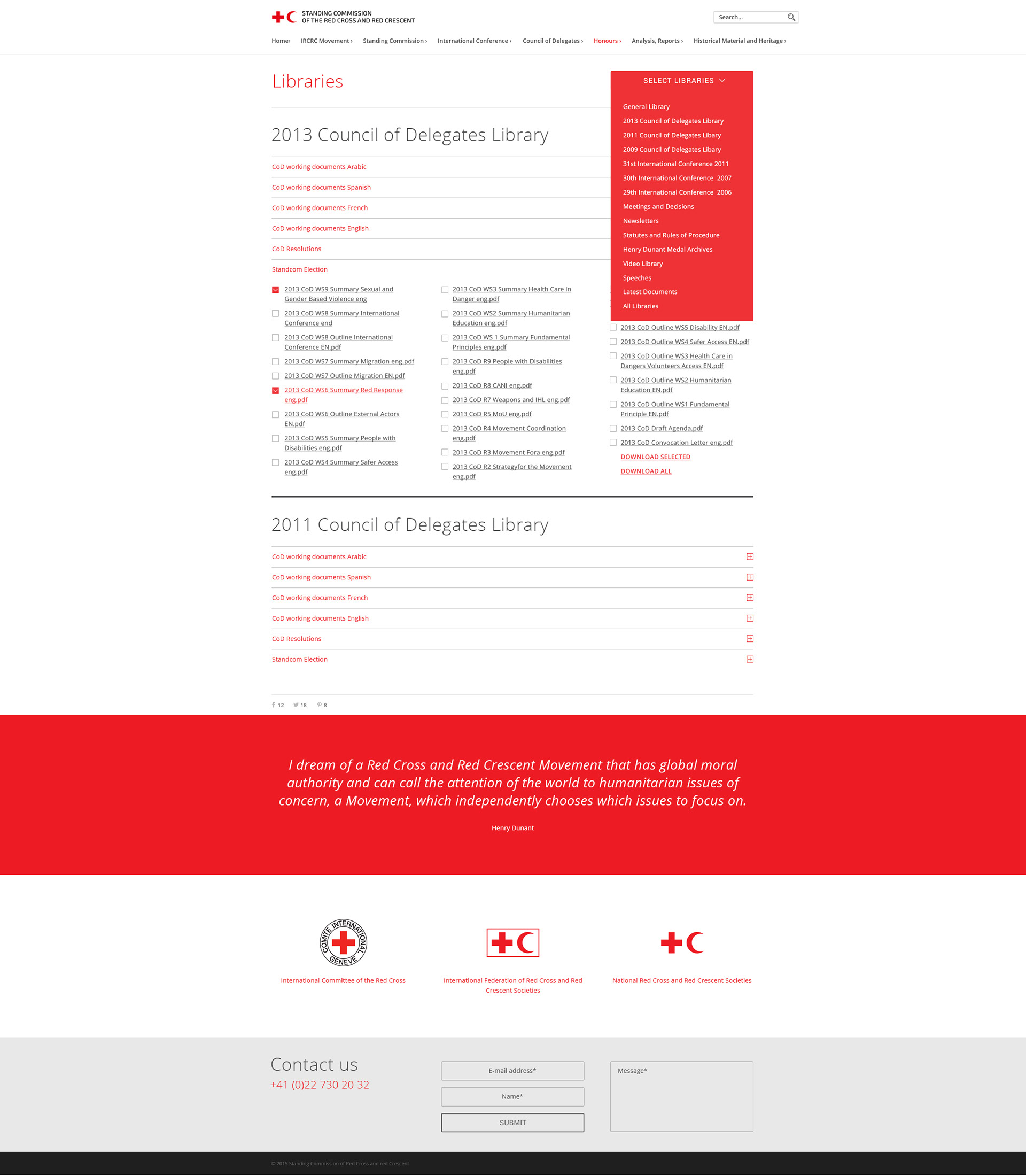 Website design for Standing Comission of the Red Cross and Red Crescent.